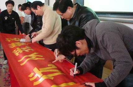 我院迎评估工作已进入攻坚阶段,新征程的号角已经吹响,“迎评促建”对于我们每一位长征人来说,都是一次考验,一份责任,也是一次机遇。校兴我荣,校衰我耻。为积极响应学院迎评促建活动的开展,积极营造浓厚的迎评氛围,2010年3月16日下午, 以“全院动员 迎评创优 从我做起”“为主题的“学生干部动员大会”暨学生公寓‘迎评促建’活动月开幕式在1318教室隆重拉开帷幕。院党委副书记洪骏、学生处处长富荣辉、学生处副处长陈南荪、院团委书记陶元、公寓管理科科长郑鲜等出席了开幕式,参加开幕式的还有各系辅导员、公寓辅导员有关老师及学生组织代表等。        开幕式上,院党委副书记洪骏为“迎评促建”活动月开幕式致开幕辞。学生代表何励同学宣读了“倡议书”,学生干部代表温璐同学作了发言。通过主持人介绍“迎评促建”活动月的系列活动,接下来将陆续进行“迎评促建,爱我公寓共建美好家园”万人签名活动、学生公寓星级寝室评比活动暨寝室卫生宣传周活动、“创优质服务,建节约公寓”我为“评估做贡献”、学生公寓“迎评促建”十项建设宣传周、首届“迎评杯”叠被子比赛、迎评杯”书法大赛活动策划书、学生公寓“迎评促建”宣传海报比赛、“迎评促建”知识竞赛等各类丰富多彩的活动,使“迎评”深入人心,并广泛动员和组织学生以“主人翁”的积极主动心态投入到我院“迎评促建”的各项活动中去,树立良好的榜样和先锋带头作用。         学生干部动员大会结束后,在场院领导、老师和学生都有秩序地在“迎评促建,我为迎评做贡献”和“迎评促建,爱我公寓共建美好家园”两条横幅上签上自己的名字,以表“迎评有我“的决心。