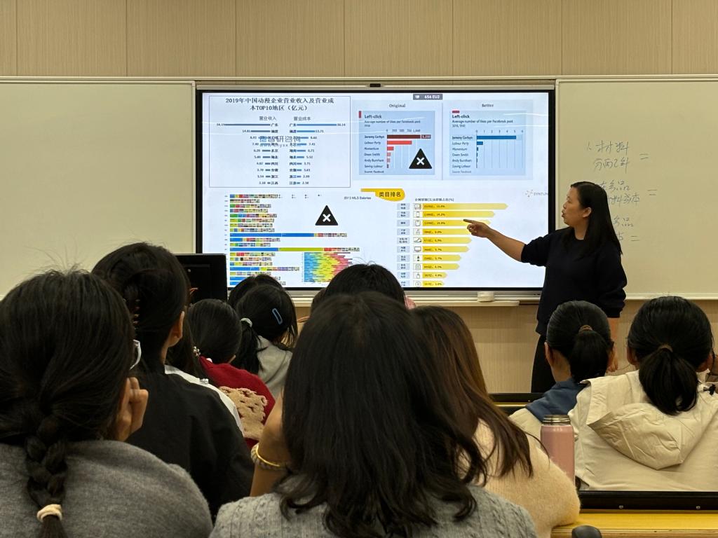 统计与会计核算专业教研室教师张俊霞展示了《小微企业智能统计》课程的教学过程。张俊霞以中华人民共和国2023年统计公报为切入点,带领学生认识各类统计图、分析统计图中传递的信息,了解我国近五年GDP水平和增长速度、产业分布、劳动生产率水平、人口、投资产业分布、进出口总额、居民收入等,不仅讲授了专业知识,还培养了同学们的爱国精神增强民族自豪感。教学过程中通过具体的案例和系统地梳理帮助大家了解和掌握相关专业知识。
