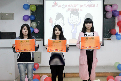 4月25日下午2点,在2117举办了第五届读书月闭幕式暨颁奖仪式。读书月系列活动之演讲比赛、读书之星和征文比赛中共20名同学获得嘉奖;管理系摘得知识竞赛的桂冠,会计系、财管系和贸易系并列获得二等奖。